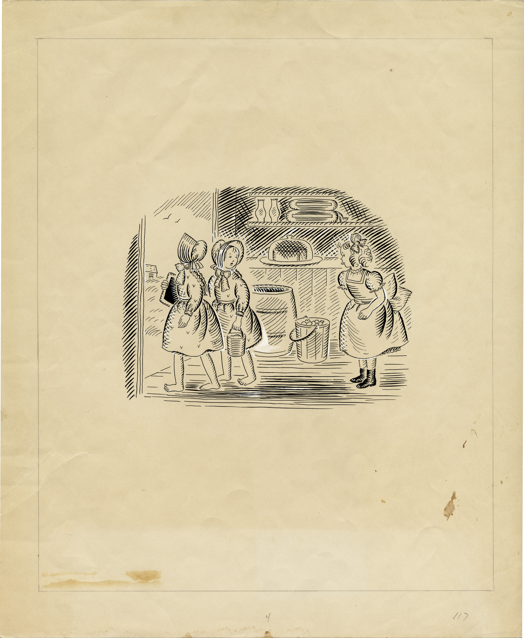 From a collection of twenty-four original pen and ink drawings by Helen Sewell and Mildred Boyle used in the first editions of books from the "Little house" series by Laura Ingalls Wilder.