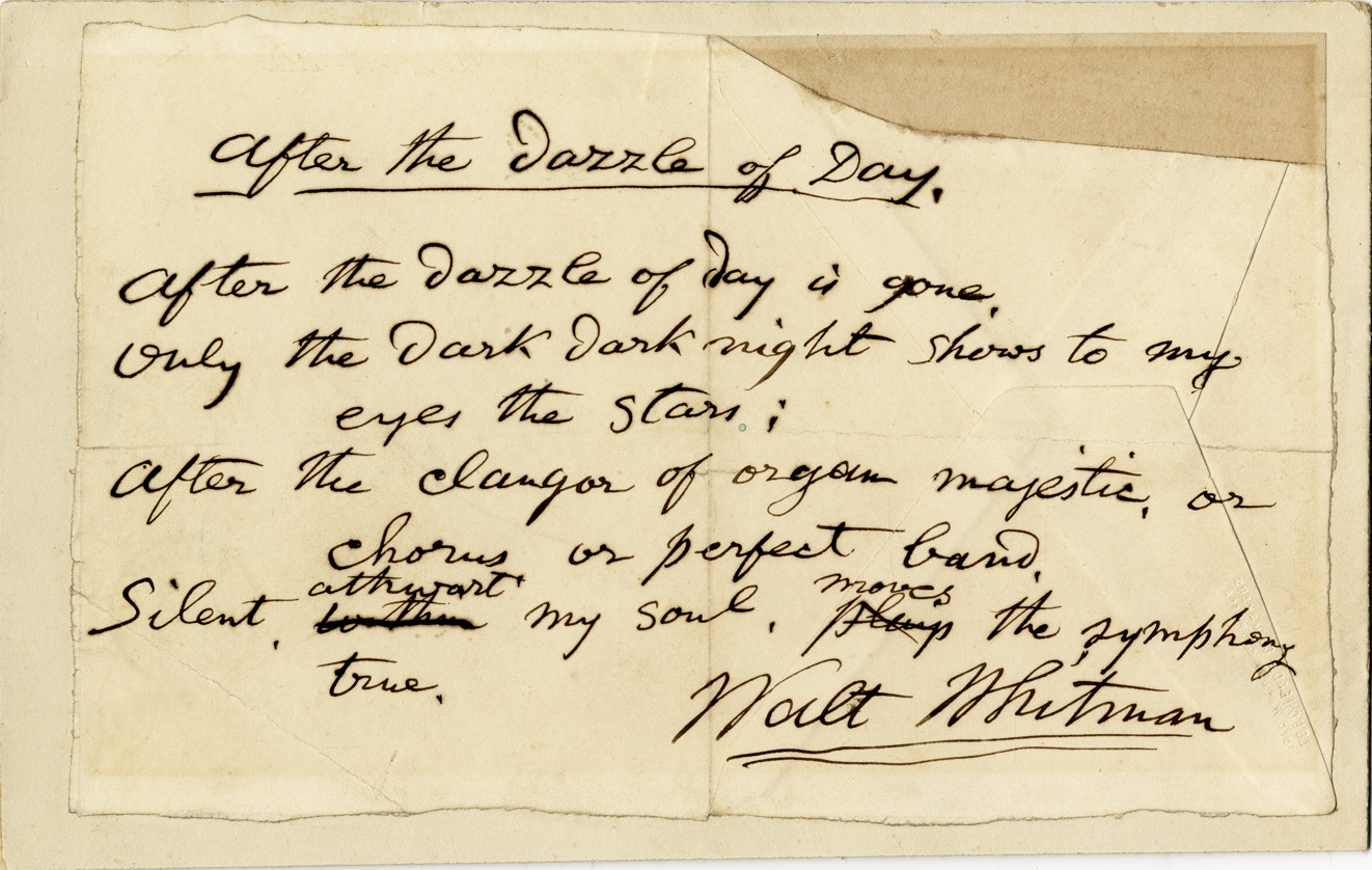 Manuscript for "After the dazzle of day" by Walt Whitman.