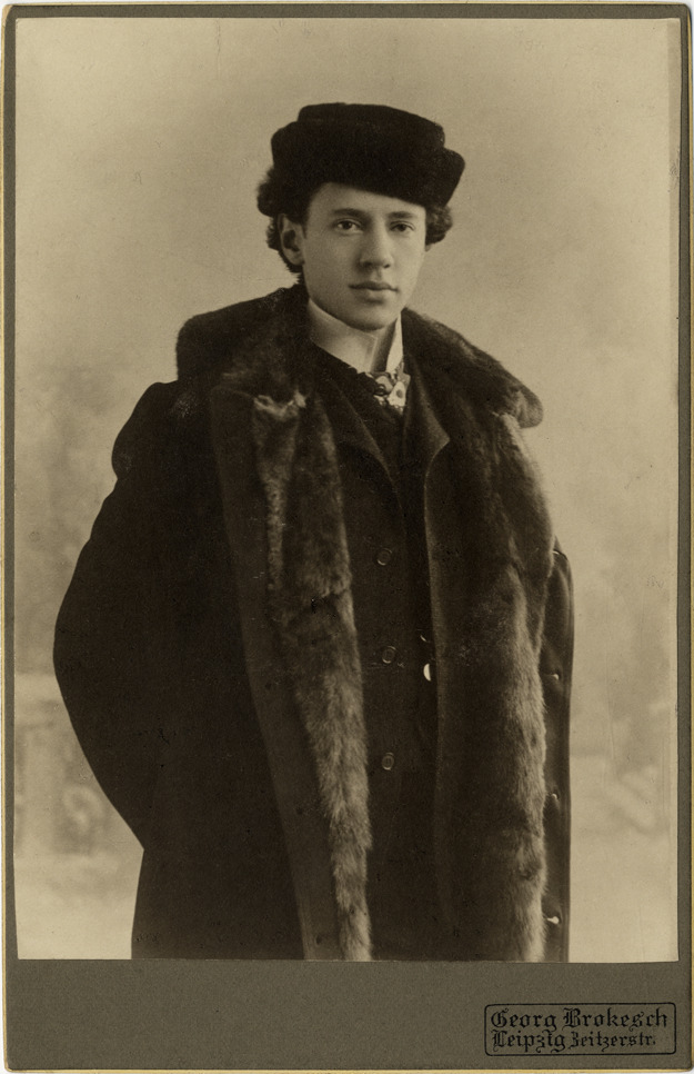 Portrait of Ossip S. Gabrilowitsch. Gabrilowitsch was conductor of the Detroit Symphony Orchestra from 1918-1936. Printed on front: "Georg Brokesch, Leipzig Zeitzerstr." Printed on back: "Georg Brokesch. Leipzig. Zeitzerstrasse 2. Zweiggeschaft in Hannover unter der Firma Karl F. Wunder, Friedrichstr. Pramiirt mit ersten Preisen: Leipzig 1879, Dresden 1879, Nurnberg 1880, Hamburg 1881, Brussel 1883, Braunschweig 1886, London 1886, Florenz 1887, Wien 1890, Gent 1893, St. Louis 1894, Hannover 1901, Leipzig 1901. Telephon Anschluss 3191." Handwritten on back: "Gabrilowitsch, Ossip Solomonovich, 1878-1936, portraits."