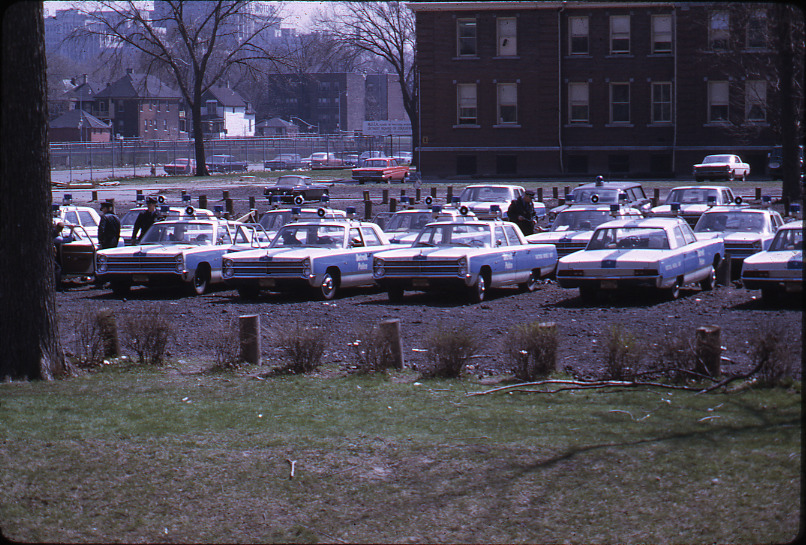 Favorite this☆ Detroit Police cars, Kiefer Command Post Description: View of Detroit Police officers with police cars at the Kiefer Command Post parked on the grounds of Herman Kiefer Hospital during the 1967 riots in Detroit. Handwritten on mount: "Police, Kiefer grounds." Details Resource ID: bh010624 Subject: Police vehicles--Michigan--Detroit Police--Michigan--Detroit Riots--Michigan--Detroit Slides Date Issued: 1967 Format: 1 slide in cardboard mount : col. ; 2 x 2 in. Member of: Burton Historical Collection Negative Number: Slide no. 1554 Rights: Physical rights are retained by DPL. Copyright is retained in accordance with U.S. copyright laws.
