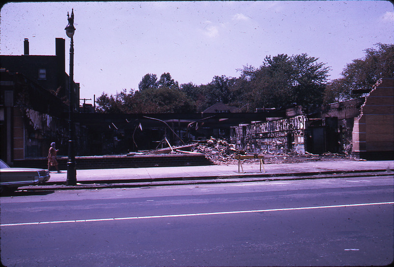 Favorite this☆ Fire-damaged building Description: View of a brick building damaged by fire during the 1967 riots in Detroit. Details Resource ID: bh010683 Subject: Buildings--Fires and fire prevention--Michigan--Detroit Lost architecture--Michigan--Detroit Riots--Michigan--Detroit Slides Date Issued: 1967 Format: 1 slide in cardboard mount : col. ; 2 x 2 in. Member of: Burton Historical Collection Negative Number: Slide no. 1616 Rights: Physical rights are retained by DPL. Copyright is retained in accordance with U.S. copyright laws.