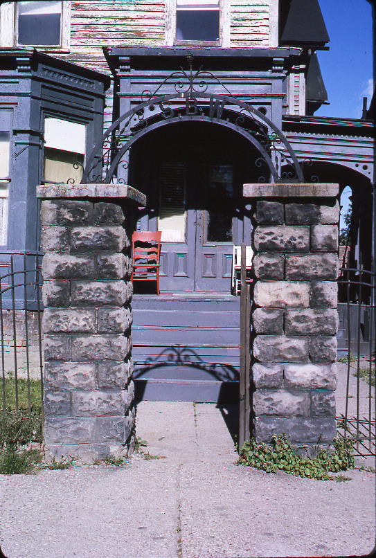 Favorite this☆ Gate, house at 2951 East Fort Street Description: Close-up view of stone gateposts with wrought-iron arch in front of a wooden-frame house located at 2951 E. Fort St. Arch has the initials "S.B.W." Handwritten on mount: "2951 E. Fort, SBW, 9-20-64." Details Resource ID: bh010696 Subject: Gates--Michigan--Detroit Wooden-frame houses--Michigan--Detroit Slides Date Issued: 1964-09-20 Format: 1 slide in cardboard mount : col. ; 2 x 2 in. Member of: Burton Historical Collection Negative Number: Slide no. 253 Rights: Physical rights are retained by DPL. Copyright is retained in accordance with U.S. copyright laws.