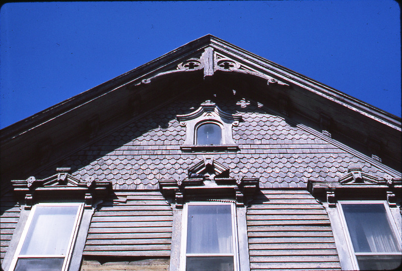 Favorite this☆ Roof gable, 2261 East Larned Description: Close-up view of the front gable and windows of a wooden-frame Queen Anne style house located on 2261 E. Larned. Handwritten on mount: "2261 E. Larned, roof peak, 10-4-64." Details Resource ID: bh010741 Subject: Gables--Michigan--Detroit Windows--Michigan--Detroit Architecture, Queen Anne--Michigan--Detroit Wooden-frame houses--Michigan--Detroit Slides Date Issued: 1964-10-04 Format: 1 slide in cardboard mount : col. ; 2 x 2 in. Member of: Burton Historical Collection Negative Number: Slide no. 213 Rights: Physical rights are retained by DPL. Copyright is retained in accordance with U.S. copyright laws.