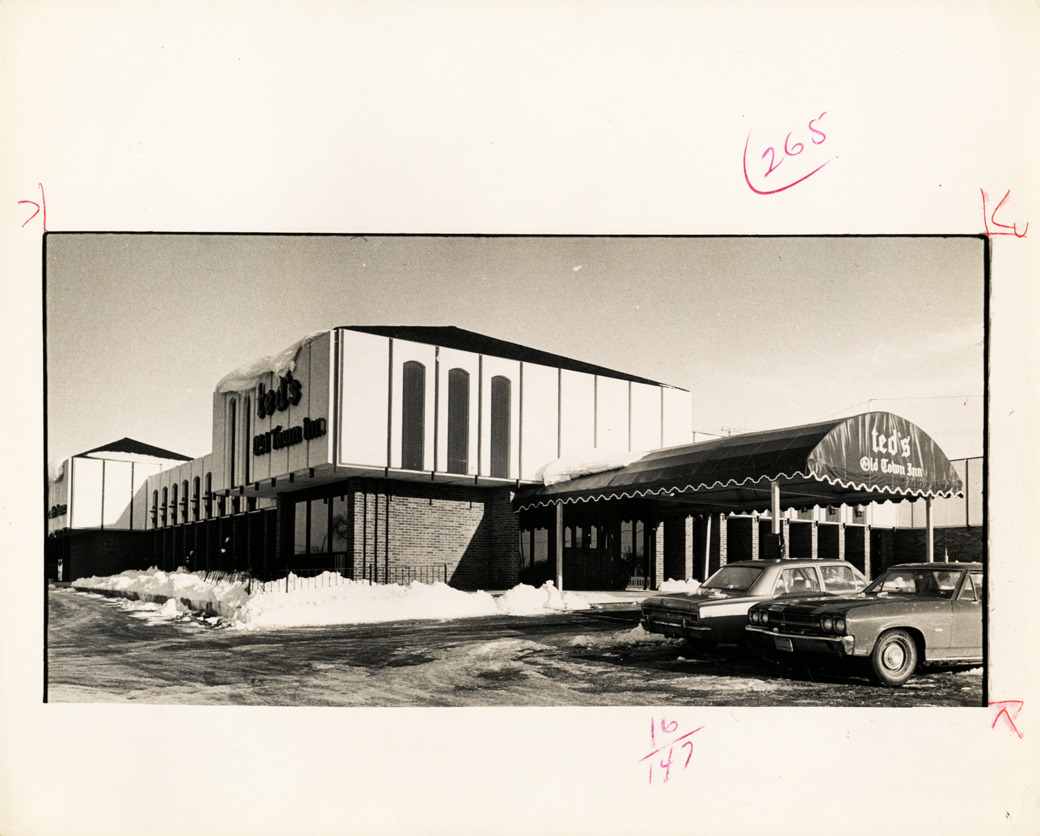 Ted's Old Town Inn, Bloomfield Hills, Michigan Description: View of Ted's Old Town Inn in Bloomfield Hills, Michigan. Stamped on back: "Detroit Free Press Roto, date 12/29, page 17/B. Detroit Free Press photo, 1974 Dec.-4, PM 4:53. Please return to Photo Dept. if not published." Details Resource ID: bh010795 Creator: Detroit Free Press Subject: Restaurants--Michigan--Bloomfield Hills Bars (Drinking establishments)--Michigan--Bloomfield Hills Photographic prints Date Issued: 1974-12 Format: 1 photographic print ; 8 x 10 in. Member of: Burton Historical Collection Filing Location: M/Loc.-Bloomfield Hills Rights: Physical rights are retained by DPL. Copyright is retained in accordance with U.S. copyright laws.