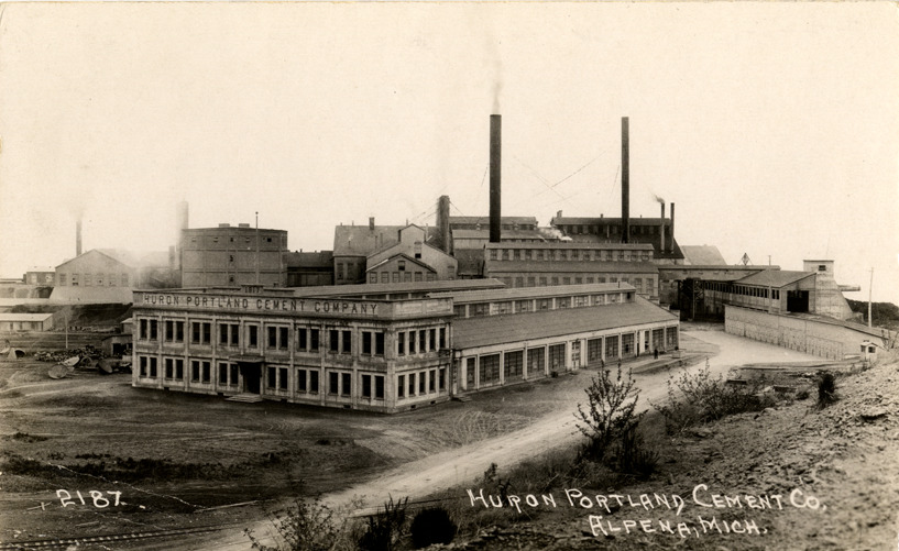 Favorite this☆ Huron-Portland Cement Company factory, Alpena, Michigan Description: View of the Huron-Portland Cement Company factory in Alpena, Michigan. Printed on front: "Huron Portland Cement Co, Alpena, Mich., 2187." Stamped on back: "Crescent Photo Co., 3341 23 Ave. So., Minneapolis, Minn." Details Resource ID: bh011183 Creator: Crescent Photo Co. Subject: Factories--Michigan--Alpena Cement industries--Michigan--Alpena Photographers--Minnesota--Minneapolis Photographic prints Postcards Date Issued: Unknown year Format: 1 postcard ; 3.5 x 5.5 in. Member of: Burton Historical Collection Filing Location: M/Localities-Alpena Rights: Physical rights are retained by DPL. Copyright is retained in accordance with U.S. copyright laws.