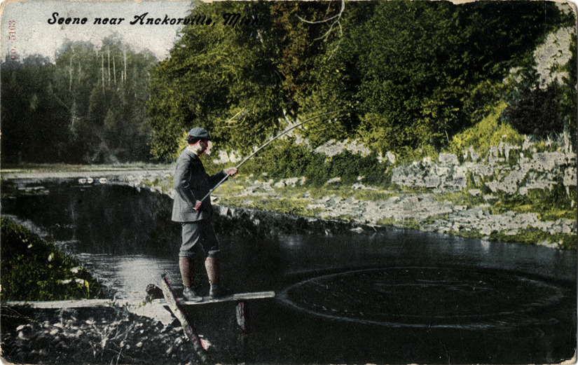 Favorite this☆ Man fishing in river, Anchorville, Michigan Description: View of a man fishing in river at Anchorville, Michigan. Printed on front: "Scene near Anckorville [sic], Mich. no. 5163." Handwritten on back: "Address letter to me. Anchorville, Mich. Edna." Card is postmarked July 12, 1916. Details Resource ID: bh011197 Subject: Fishers--Michigan--Anchorville Fishing--Michigan--Anchorville Rivers--Michigan--Anchorville Postcards Date Issued: 1916 (year approximate) Format: 1 postcard : col. ; 3.5 x 5.5 in. Member of: Burton Historical Collection Filing Location: M/Localities-Anchorville Rights: Physical rights are retained by DPL. Copyright is retained in accordance with U.S. copyright laws.