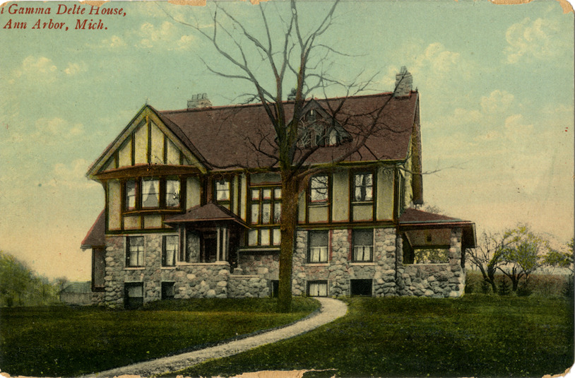 Favorite this☆ Phi Gamma Delta house, Ann Arbor, Michigan Description: View of Tudor-style Phi Gamma Delta fraternity house in Ann Arbor, Michigan. Printed on front: "[Phi] Gamma Delta house, Ann Arbor, Mich." Printed on back: "A.A. 17, Wolverine News Co., Detroit, Mich. Printed in Belgium." Details Resource ID: bh011227 Subject: Greek letter societies--Michigan--Ann Arbor University of Michigan--Student housing Architecture, Tudor--Michigan--Ann Arbor Postcards Publisher: Wolverine News Co. Date Issued: Unknown year Format: 1 postcard : col. ; 3.5 x 5.5 in. Member of: Burton Historical Collection Filing Location: M/Localities-Ann Arbor Rights: Physical rights are retained by DPL. Copyright is retained in accordance with U.S. copyright laws.