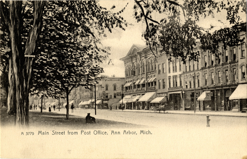 Favorite this☆ Main Street, Ann Arbor, Michigan Description: View of commercial buildings on Main St. in Ann Arbor, Michigan. Printed on front: "A3779. Main Street from Post Office, Ann Arbor, Mich." Printed on back: "The Rotograph Co., N.Y., City, (Germany)." Details Resource ID: bh011284 Subject: Streets--Michigan--Ann Arbor Commercial buildings--Michigan--Ann Arbor Postcards Publisher: Rotograph Co. Date Issued: Unknown year Format: 1 postcard ; 3.5 x 5.5 in. Member of: Burton Historical Collection Filing Location: M/Localities-Ann Arbor Rights: Physical rights are retained by DPL. Copyright is retained in accordance with U.S. copyright laws.