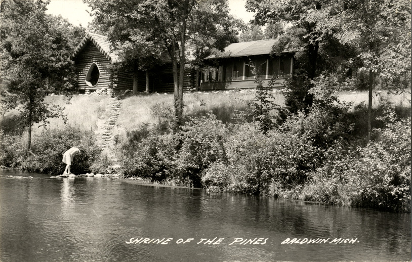 Favorite this☆ Shrine of the Pines, Baldwin, Michigan Description: View of the Shrine of the Pines in Baldwin, Michigan. Printed on front: "Shrine of the Pines, Baldwin, Mich." Printed on back: "All rights reserved. The L.L. Cook Co., Milwaukee." Details Resource ID: bh011364 Subject: Shrine of the Pines (Baldwin, Mich.) Log cabins--Michigan--Baldwin Overholzer, Raymond W. Photographic prints Postcards Publisher: L.L. Cook Co. Date Issued: Unknown year Format: 1 postcard ; 3.5 x 5.5 in. Member of: Burton Historical Collection Filing Location: M/Localities-Baldwin Rights: Physical rights are retained by DPL. Copyright is retained in accordance with U.S. copyright laws.