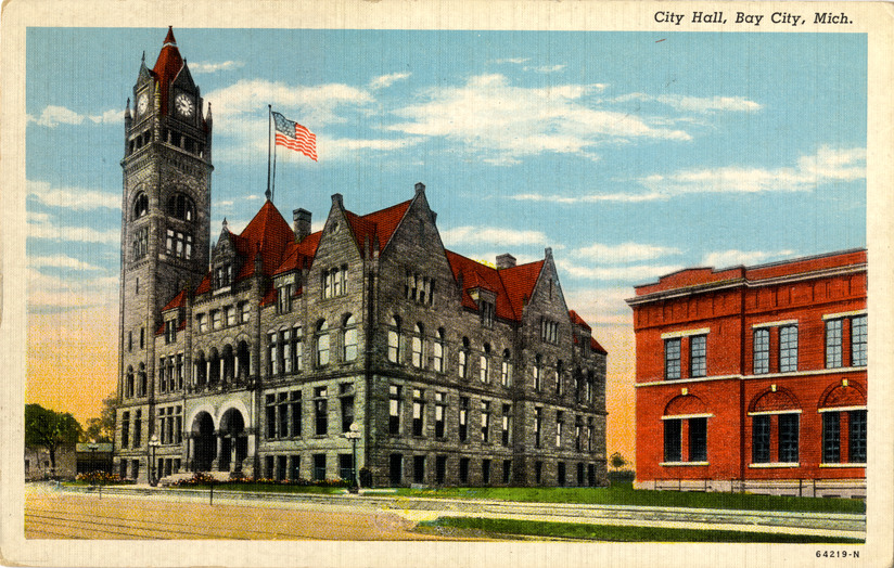 Favorite this☆ City Hall, Bay City, Michigan Description: View of the City Hall in Bay City, Michigan. Printed on front: "City Hall, Bay City, Mich." Printed on back: "Geo. L. Billings Co., Bay City, Mich. Genuine Curteich-Chicago 'C.T. American Art' post card (reg. U.S. Pat. Off.)" Details Resource ID: bh011657 Subject: City halls--Michigan--Bay City Postcards Publisher: George L. Billings Curt Teich & Co. Date Issued: Unknown year Format: 1 postcard : col. ; 3.5 x 5.5 in. Member of: Burton Historical Collection Filing Location: M/Localities-Bay City Rights: Physical rights are retained by DPL. Copyright is retained in accordance with U.S. copyright laws.