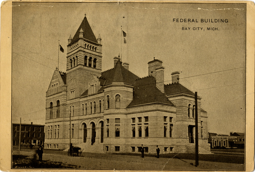 Favorite this☆ Federal Building, Bay City, Michigan Description: View of the Federal Building in Bay City, Michigan. Printed on front: "Federal Building, Bay City, Mich." Printed on back: "Published by C. & J. Gregory, Bay City, Mich." Details Resource ID: bh011667 Subject: Public buildings--Michigan--Bay City Postcards Publisher: C. & J. Gregory Date Issued: Unknown year Format: 1 postcard ; 3.5 x 5.5 in. Member of: Burton Historical Collection Filing Location: M/Localities-Bay City Rights: Physical rights are retained by DPL. Copyright is retained in accordance with U.S. copyright laws.