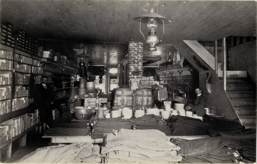 Favorite this☆ Interior, general store, Beaver Island, Michigan Description: View of the interior of general store on Beaver Island, Michigan. Two men pose in store; store contains clothing, dishes, barrels, boxes and hats. Printed on back: "General store interior, Beaver Island, 1900." Details Resource ID: bh011728 Subject: General stores--Michigan--Beaver Island Photographic prints Postcards Date Issued: 1900 Format: 1 postcard ; 3.5 x 5.5 in. Member of: Burton Historical Collection Filing Location: M/Localities-Beaver Island Rights: Physical rights are retained by DPL. Copyright is retained in accordance with U.S. copyright laws.