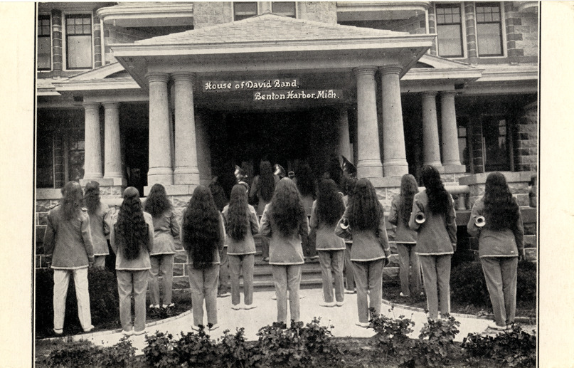 Favorite this☆ House of David Band, Benton Harbor, Michigan Description: View of musicians in the House of David Band at Benton Harbor, Michigan. Printed on front: "House of David Band, Benton Harbor, Mich." Printed on back: "Eden Springs, House of David, Benton Harbor, Mich. U.S.A. Send for literature to P.O. Box 477." Details Resource ID: bh011788 Subject: Bands (Music)--Michigan--Benton Harbor Musicians--Michigan--Benton Harbor House of David Photographic prints Postcards Publisher: House of David Date Issued: Unknown year Format: 1 postcard ; 3.5 x 5.5 in. Member of: Burton Historical Collection Filing Location: M/Localities-Benton Harbor Rights: Physical rights are retained by DPL. Copyright is retained in accordance with U.S. copyright laws.