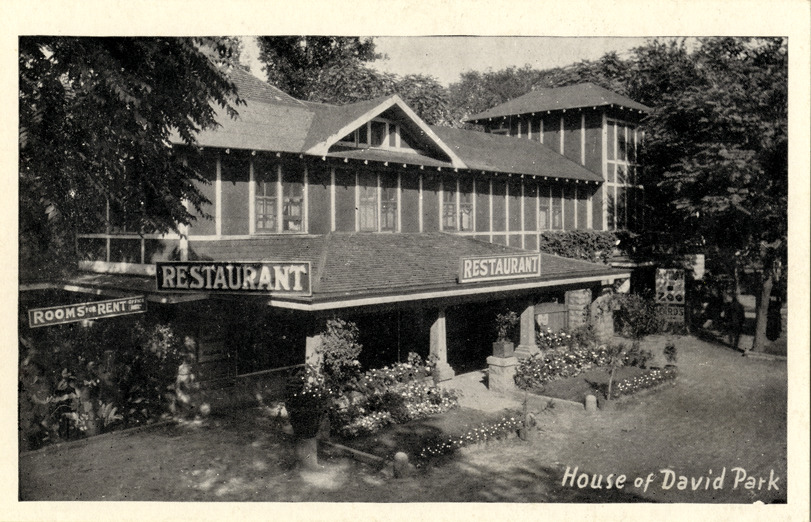 View of the restaurant at the House of David Park in Benton Harbor, Michigan. Printed on front: "House of David Park." Printed on back: "Eden Springs, House of David, Benton Harbor, Mich. U.S.A. Send for literature to P.O. Box 477."