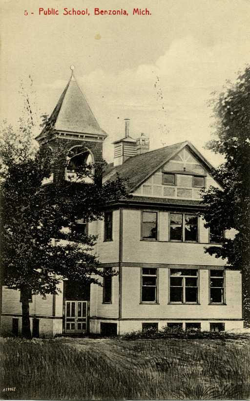 Favorite this☆ Public school, Benzonia, Michigan Description: View of the public school in Benzonia, Michigan. Printed on front: "Public school, Benzonia, Mich." Printed on back: "Published by Will P. Canaan Co., Grand Rapids, Mich. for E.T. Huntington, Benzonia, Mich. Made in Germany." Details Resource ID: bh011823 Subject: School buildings--Michigan--Benzonia Postcards Publisher: Will P. Canaan Co. E.T. Huntington Date Issued: Unknown year Format: 1 postcard ; 5.5 x 3.5 in. Member of: Burton Historical Collection Filing Location: M/Localities-Benzonia Rights: Physical rights are retained by DPL. Copyright is retained in accordance with U.S. copyright laws.