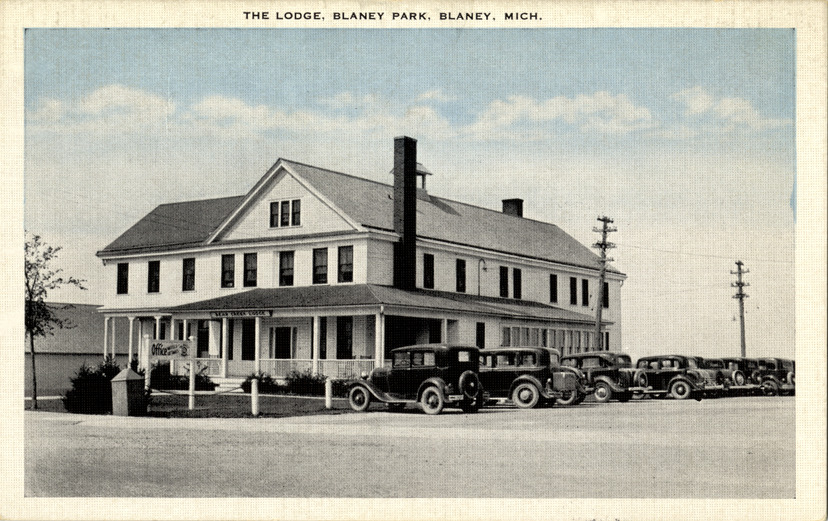 Favorite this☆ Lodge, Blaney Park, Michigan Description: View of cars parked in front of the Lodge in Blaney Park, Michigan. Printed on front: "The Lodge, Blaney Park, Blaney, Mich." Printed on back: "Made in U.S.A. by E.C. Kropp Co., Milwaukee, Wis." Details Resource ID: bh011937 Subject: Hotels--Michigan--Blaney Park Automobiles--Michigan--Blaney Park Postcards Publisher: E.C. Kropp Co. Date Issued: Unknown year Format: 1 postcard : col. ; 3.5 x 5.5 in. Member of: Burton Historical Collection Filing Location: M/Localities-Blaney Park Rights: Physical rights are retained by DPL. Copyright is retained in accordance with U.S. copyright laws.