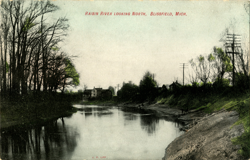 Favorite this☆ River Raisin, Blissfield, Michigan Description: View of River Raisin in Blissfield, Michigan. Printed on front: "Raisin River looking north, Blissfield, Mich." Details Resource ID: bh011941 Subject: Raisin River (Mich.) Rivers--Michigan--Blissfield Postcards Date Issued: Unknown year Format: 1 postcard : col. ; 3.5 x 5.5 in. Member of: Burton Historical Collection Filing Location: M/Localities-Blissfield Rights: Physical rights are retained by DPL. Copyright is retained in accordance with U.S. copyright laws.