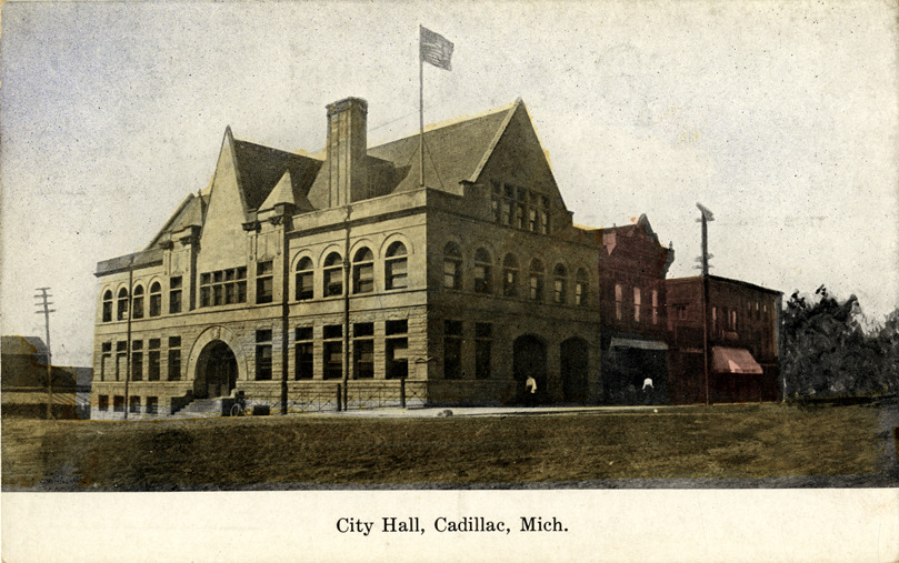 Favorite this☆ City Hall, Cadillac, Michigan Description: View of the City Hall in Cadillac, Michigan. Printed on front: "City Hall, Cadillac, Mich." Details Resource ID: bh012064 Subject: City halls--Michigan--Cadillac Postcards Date Issued: Unknown year Format: 1 postcard : col. ; 3.5 x 5.5 in. Member of: Burton Historical Collection Filing Location: M/Localities--Cadillac Rights: Physical rights are retained by DPL. Copyright is retained in accordance with U.S. copyright laws.