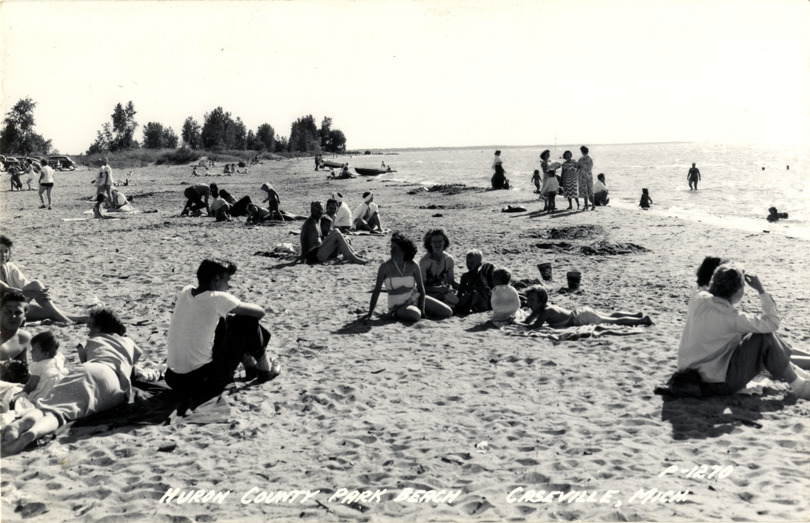 Favorite this☆ Huron County Park Beach, Caseville, Michigan Description: View of men, women and children at the Huron County Park Beach in Caseville, Michigan. Printed on front: "Huron County Park Beach, Caseville, Mich." Printed on back: "All rights reserved, the L.L. Cook Co., Milwaukee." Details Resource ID: bh012182 Subject: Beaches--Michigan--Caseville Photographic prints Postcards Publisher: L.L. Cook Co. Date Issued: Unknown year Format: 1 postcard ; 3.5 x 5.5 in. Member of: Burton Historical Collection Filing Location: M/Localities-Caseville Rights: Physical rights are retained by DPL. Copyright is retained in accordance with U.S. copyright laws.