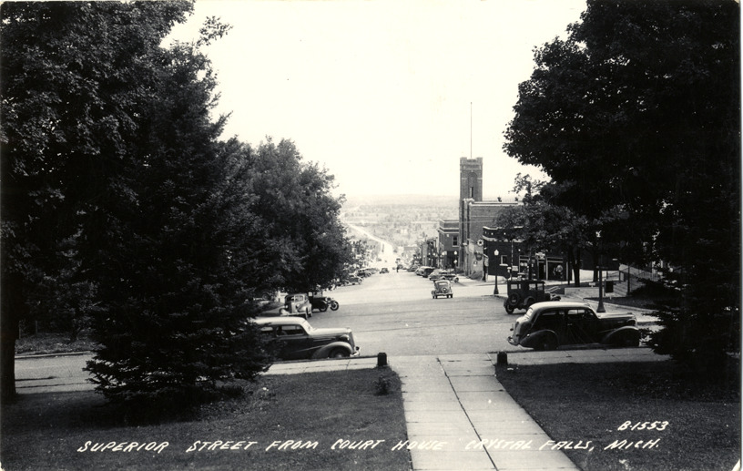 Favorite this☆ Superior Avenue, Crystal Falls, Michigan Description: View of commercial buildings and cars on Superior Ave. at Crystal Falls, Michigan. Printed on front: "Superior Street from court house. Crystal Falls, Mich." Printed on back: "All rights reserved. The L.L. Cook Co., Milwaukee." Details Resource ID: bh012532 Subject: Streets--Michigan--Crystal Falls Commercial buildings--Michigan--Crystal Falls Automobiles--Michigan--Crystal Falls Photographic prints Postcards Publisher: L.L. Cook Co. Date Issued: Unknown year Format: 1 postcard ; 3.5 x 5.5 in. Member of: Burton Historical Collection Filing Location: M/Localities-Crystal Falls Rights: Physical rights are retained by DPL. Copyright is retained in accordance with U.S. copyright laws.