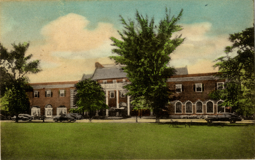 View of the Dearborn Inn in Dearborn, Michigan. Printed on back: "The Dearborn Inn on Oakwood Boulevard adjacent to Greenfield Village, Dearborn, Michigan. The finest American made view post cards. The Albertype Co., Brooklyn, N.Y." Handwritten on back: "Dear Gertrude, Grace & I are spending the day down here visiting my sister-in-law. It is a beautiful spot. Was glad to get your card from Montauk & to know you were having such a pleasant time. Spent last Sunday with the Rupps, had such a nice visit. They received your card and told me they had been at Montauk several years ago. Lillian R. Love." Card is postmarked July 19, 1944.