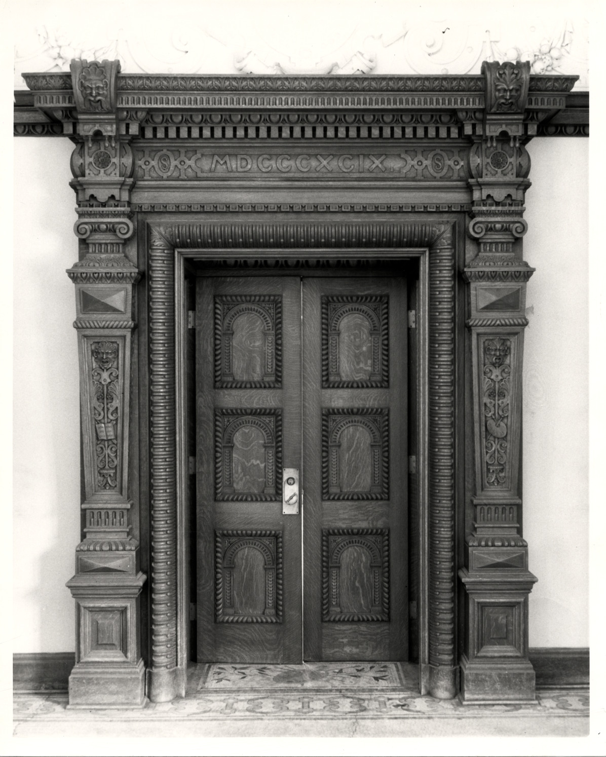 Favorite this☆ Interior door, Scripps Branch Library Description: View of interior wooden door in the Scripps Branch Library, Detroit Public Library. "MDCCCXCIX" is inscribed over door. Handwritten on back: "Scripps Library, Detroit, Trumbull and Grand River." Details Resource ID: bh012739 Subject: Detroit Public Library. Scripps Branch Library buildings--Michigan--Detroit Doors--Michigan--Detroit Doorways--Michigan--Detroit Public libraries--Michigan--Detroit Branch libraries--Michigan--Detroit Kahn, Albert, 1869-1942 Photographic prints Date Issued: Unknown year Format: 1 photographic print ; 10 x 8 in. Member of: Burton Historical Collection Filing Location: D/Libraries-DPL-Branches-Scripps Rights: Physical rights are retained by DPL. Copyright is retained in accordance with U.S. copyright laws.