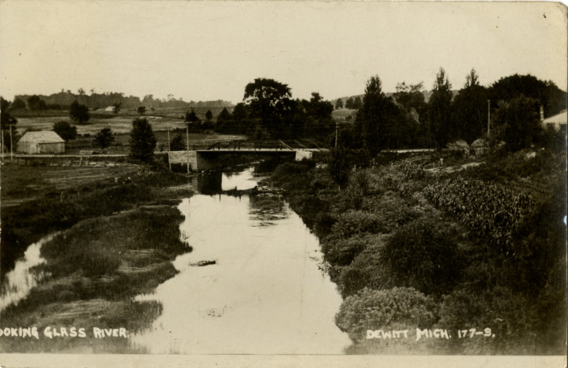 Favorite this☆ Looking Glass River, Dewitt, Michigan Description: View of the Looking Glass River in Dewitt, Michigan. Truss bridge in background. Printed on front: "Looking Glass River, Dewitt, Mich., 177-9." Handwritten message on back dated June 28, 1910. Details Resource ID: bh012764 Subject: Rivers--Michigan--Dewitt Truss bridges--Michigan--Dewitt Photographic prints Postcards Date Issued: 1910 (year approximate) Format: 1 postcard ; 3.5 x 5.5 in. Member of: Burton Historical Collection Filing Location: M/Localities-Dewitt Rights: Physical rights are retained by DPL. Copyright is retained in accordance with U.S. copyright laws.