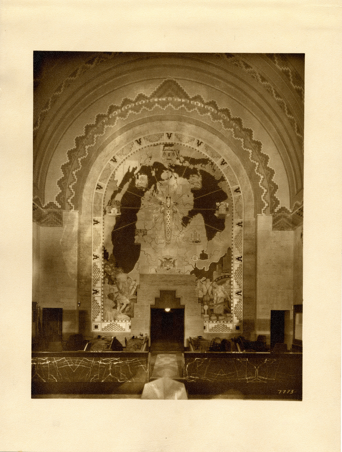 Favorite this☆ Ezra Winter mural, Union Guardian Building Description: View of a mural by Ezra Winter depicting Michigan on the main banking floor in the Union Guardian Building. The building was also known as the Guardian Building and the Union Trust Building. Handwritten on back: "Mural, south wall, main bank." Details Resource ID: bh012847 Creator: Grossman Knowling Lehr Subject: Mural painting and decoration, American--Michigan--Detroit Winter, Ezra, 1886-1949 Guardian Building (Detroit, Mich.) Bank buildings--Michigan--Detroit Art deco--Michigan--Detroit Smith, Hinchman and Grylls Rowland, Wirt C. (Wirt Clinton), 1878-1946 Photographers--Michigan--Detroit Photographic prints Date Issued: Unknown year Format: 1 photographic print ; 12.5 x 9.5 in. Member of: Burton Historical Collection Filing Location: D/Buildings-Union Guardian Rights: Physical rights are retained by DPL. Copyright is retained in accordance with U.S. copyright laws.