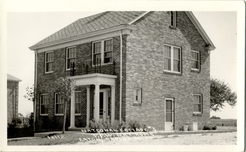 Favorite this☆ V.F.W. National Home, Eaton Rapids, Michigan Description: View of the V.F.W. National Home in Eaton Rapids, Michigan. Two-story brick house has covered entry porch. Printed on front: "National Cottage #3, V.F.W. Nat. Home, Eaton Rapids, Mich." Details Resource ID: bh012910 Subject: Brick houses--Michigan--Eaton Rapids Veterans of Foreign Wars of the United States. National Home Orphanages--Michigan--Eaton Rapids Photographic prints Postcards Date Issued: Unknown year Format: 1 postcard ; 3.5 x 5.5 in. Member of: Burton Historical Collection Filing Location: M/Localities-Eaton Rapids Rights: Physical rights are retained by DPL. Copyright is retained in accordance with U.S. copyright laws.