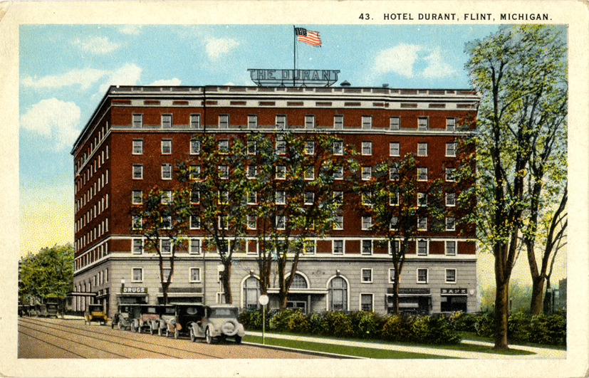 Favorite this☆ Hotel Durant, Flint, Michigan Description: View of the Hotel Durant in Flint, Michigan. Printed on front: "43, Hotel Durant, Flint, Michigan." Printed on back: "Published by Harry H. Hamm, Toledo, Ohio. Made in U.S.A. H.H. Hamm, Toledo, Ohio. C.T. American art. CT & Co., Chicago." Details Resource ID: bh013136 Subject: Hotels--Michigan--Flint Postcards Publisher: Harry H. Hamm Curt Teich & Co. Date Issued: Unknown year Format: 1 postcard : col. ; 3.5 x 5.5 in. Member of: Burton Historical Collection Filing Location: M/Localities-Flint Rights: Physical rights are retained by DPL. Copyright is retained in accordance with U.S. copyright laws.