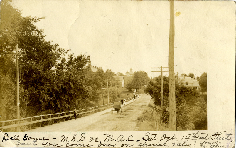 Favorite this☆ Court Street Bridge, Flint, Michigan Description: View of the Court Street Bridge in Flint, Michigan. Handwritten on front: "Ball game. M.S.D. vs. M.A.C. Sat. Oct. 14th at Flint. Can't you come over on special rates? Yours, M. Alice." Card is postmarked October 13, 1905. Details Resource ID: bh013139 Subject: Bridges--Michigan--Flint Photographic prints Postcards Date Issued: 1905 (year approximate) Format: 1 postcard ; 3.5 x 5.5 in. Member of: Burton Historical Collection Filing Location: M/Localities-Flint Rights: Physical rights are retained by DPL. Copyright is retained in accordance with U.S. copyright laws.