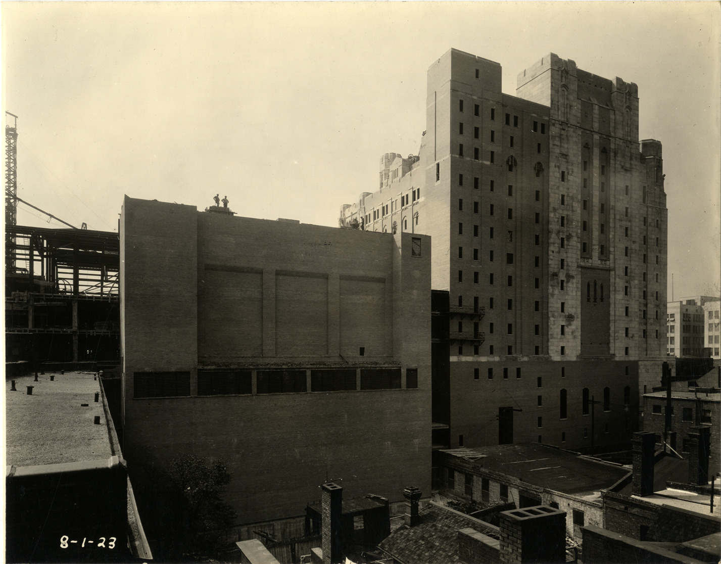 Favorite this☆ Masonic Temple under construction Description: View of the Masonic Temple in Detroit, Michigan during construction. Printed on front: "8-1-23." Stamped on back: "J.W. Hughes, photographer. 21 Milwaukee Avenue West. Northway 3145. Detroit, Mich. Your negatives safely filed for re-orders." Details Resource ID: bh013709 Creator: Hughes, J.W. Subject: Masonic Temple (Detroit, Mich.) Freemasons--Michigan--Detroit--Buildings--Design and construction Mason, George D. Photographers--Michigan--Detroit Photographic prints Date Issued: 1923-08-01 Format: 1 photographic print mounted on fabric ; 7.5 x 9.5 in. Member of: Burton Historical Collection Filing Location: D/Buildings-Masonic Temple Rights: Physical rights are retained by DPL. Copyright is retained in accordance with U.S. copyright laws.
