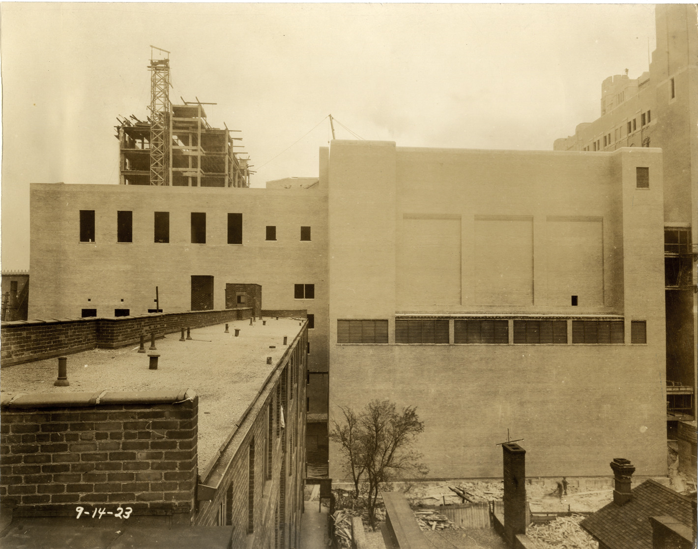 Favorite this☆ Masonic Temple under construction Description: View of the Masonic Temple in Detroit, Michigan during construction. Printed on front: "9-14-23." Stamped on back: "J.W. Hughes, photographer. 21 Milwaukee Avenue West. Northway 3145. Detroit, Mich. Your negatives safely filed for re-orders." Details Resource ID: bh013718 Creator: Hughes, J.W. Subject: Masonic Temple (Detroit, Mich.) Freemasons--Michigan--Detroit--Buildings--Design and construction Mason, George D. Photographers--Michigan--Detroit Photographic prints Date Issued: 1923-09-14 Format: 1 photographic print mounted on fabric ; 7.5 x 9.5 in. Member of: Burton Historical Collection Filing Location: D/Buildings-Masonic Temple Rights: Physical rights are retained by DPL. Copyright is retained in accordance with U.S. copyright laws.
