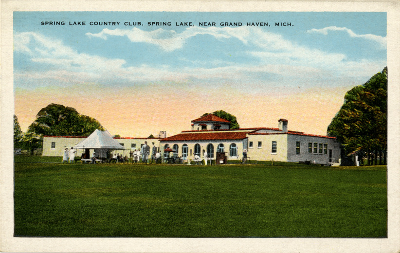 Favorite this☆ Spring Lake Country Club, Spring Lake, Michigan Description: View of the Spring Lake Country Club in Spring Lake, Michigan. Printed on front: "Spring lake Country Club, Spring Lake, near Grand Haven, Mich." Printed on back: "Pub. by Reichardt, Grand Haven, Mich. Made in U.S.A." Details Resource ID: bh013809 Subject: Country clubs--Michigan--Spring Lake Postcards Publisher: Reichardt's Book Shop Date Issued: Unknown year Format: 1 postcard : col. ; 3.5 x 5.5 in. Member of: Burton Historical Collection Filing Location: M/Localities-Grand Haven Rights: Physical rights are retained by DPL. Copyright is retained in accordance with U.S. copyright laws.