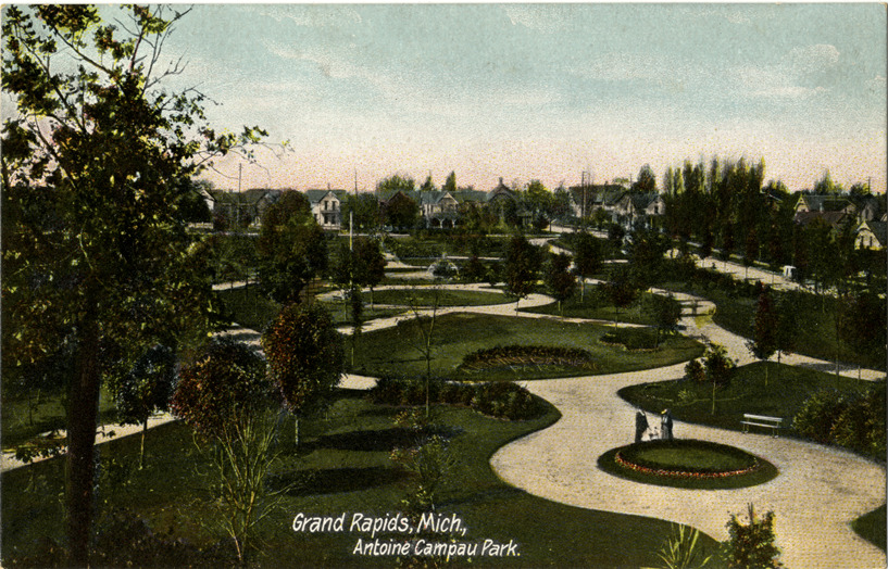 Favorite this☆ Antoine Campau Park, Grand Rapids, Michigan Description: View of Antoine Campau Park in Grand Rapids, Michigan. Printed on front: "Grand Rapids, Mich. Antoine Campau Park." Printed on back: "Published by Hazeltine & Perkins Drug Co., Grand Rapids, Mich. Made in Germany. 5679." Details Resource ID: bh013847 Subject: Parks--Michigan--Grand Rapids Postcards Publisher: Hazeltine & Perkins Drug Co. Date Issued: Unknown year Format: 1 postcard : col. ; 3.5 x 5.5 in. Member of: Burton Historical Collection Filing Location: M/Localities-Grand Rapids Rights: Physical rights are retained by DPL. Copyright is retained in accordance with U.S. copyright laws.