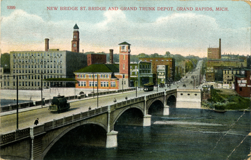 Bridge Street Bridge and Grand Trunk railroad depot, Grand Rapids, Michigan