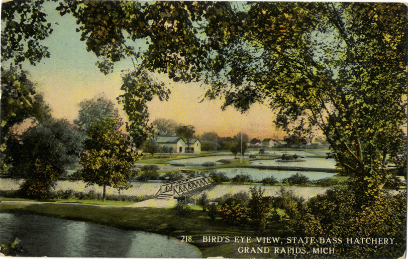 Favorite this☆ State Bass Hatchery, Grand Rapids, Michigan Description: View of the State Bass Hatchery in Grand Rapids, Michigan. Printed on front: "218. Bird's-eye view, State Bass Hatchery, Grand Rapids, Mich." Printed on back: "Published by Will P. Canaan Co., Grand Rapids, Mich. Made in U.S.A." Details Resource ID: bh013970 Subject: Fish hatcheries--Michigan--Grand Rapids Postcards Publisher: Will P. Canaan Co. Date Issued: Unknown year Format: 1 postcard : col. ; 3.5 x 5.5 in. Member of: Burton Historical Collection Filing Location: M/Localities-Grand Rapids Rights: Physical rights are retained by DPL. Copyright is retained in accordance with U.S. copyright laws.