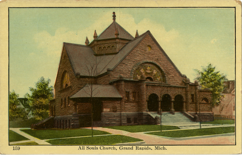 View of the All Souls Church in Grand Rapids, Michigan. Printed on front: "159. All Souls Church, Grand Rapids, Mich."