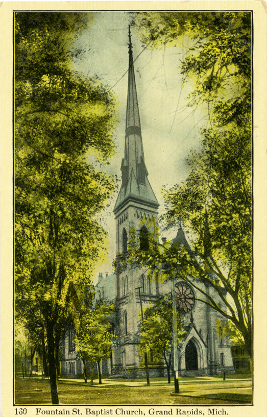 Favorite this☆ Fountain Street Baptist Church, Grand Rapids, Michigan Description: View of the Fountain Street Baptist Church in Grand Rapids, Michigan. Printed on front: "130. Fountain St. Baptist Church, Grand Rapids, Mich." Details Resource ID: bh013977 Subject: Baptist church buildings--Michigan--Grand Rapids Postcards Date Issued: Unknown year Format: 1 postcard : col. ; 5.5 x 3.5 in. Member of: Burton Historical Collection Filing Location: M/Localities-Grand Rapids Rights: Physical rights are retained by DPL. Copyright is retained in accordance with U.S. copyright laws.