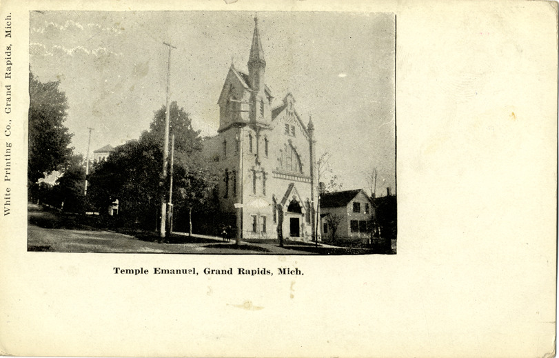 Favorite this☆ Temple Emanuel, Grand Rapids, Michigan Description: View of Temple Emanuel in Grand Rapids, Michigan. Printed on front: "Temple Emanuel, Grand Rapids, Mich. White Printing Co., Grand Rapids, Mich." Details Resource ID: bh013979 Subject: Synagogues--Michigan--Grand Rapids Postcards Publisher: White Printing Co. Date Issued: Unknown year Format: 1 postcard ; 3.5 x 5.5 in. Member of: Burton Historical Collection Filing Location: M/Localities-Grand Rapids Rights: Physical rights are retained by DPL. Copyright is retained in accordance with U.S. copyright laws.