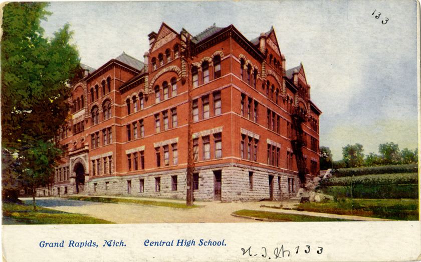 Favorite this☆ Central High School, Grand Rapids, Michigan Description: View of Central High School in Grand Rapids, Michigan. Printed on front: "Grand Rapids, Mich. Central High School." Handwritten on front: "N.J.W. 133." Details Resource ID: bh014002 Subject: High school buildings--Michigan--Grand Rapids Postcards Date Issued: Unknown year Format: 1 postcard : col. ; 3.5 x 5.5 in. Member of: Burton Historical Collection Filing Location: M/Localities-Grand Rapids Rights: Physical rights are retained by DPL. Copyright is retained in accordance with U.S. copyright laws.
