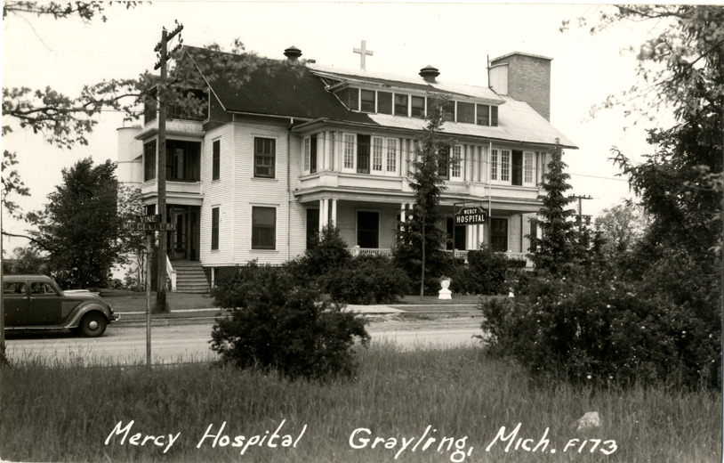 Favorite this☆ Mercy Hospital, Grayling, Michigan Description: View of Mercy Hospital in Grayling, Michigan. Printed on front: "Mercy Hospital, Grayling, Mich. F173." Details Resource ID: bh014050 Subject: Hospital buildings--Michigan--Grayling Photographic prints Postcards Date Issued: Unknown year Format: 1 postcard ; 3.5 x 5.5 in. Member of: Burton Historical Collection Filing Location: M/Localities-Grayling Rights: Physical rights are retained by DPL. Copyright is retained in accordance with U.S. copyright laws.
