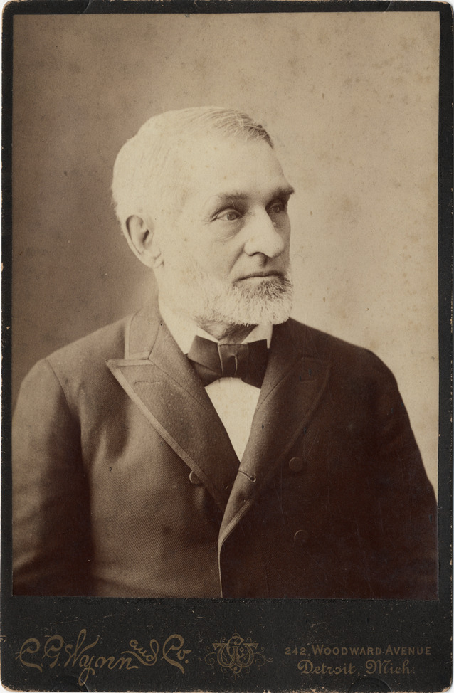 Portrait of Leander L. Farnsworth. Printed on front: "C.G. Wynn and Co., 242 Woodward Avenue, Detroit, Mich." Printed on back: "Photography in all its branches. C.G. Wynn and Co. 242 Woodward Avenue, Detroit, Mich. Negatives kept." Handwritten on back: "Farnsworth, Leander L."