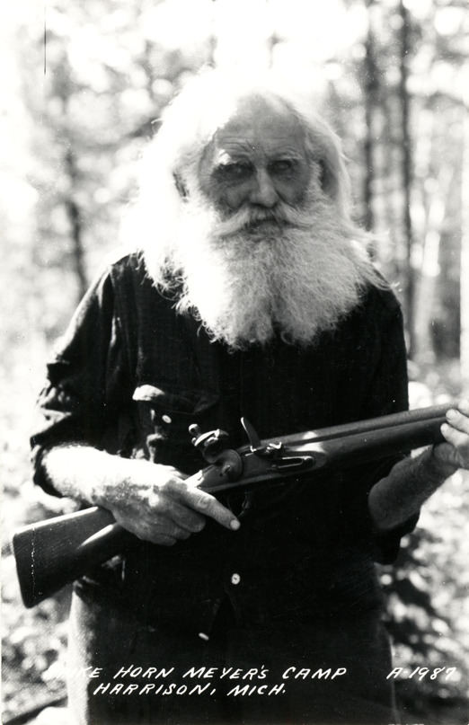 Favorite this☆ John "Spikehorn" Meyers, Harrison, Michigan Description: View of John "Spikehorn" Meyers holding a rifle at Harrison, Michigan. Printed on front: "Spike Horn Meyer's Camp, Harrison, Mich." Details Resource ID: bh014572 Subject: Men--Michigan--Harrison Rifles--Michigan--Harrison Photographic prints Postcards Date Issued: Unknown year Format: 1 postcard ; 5.5 x 3.5 in. Member of: Burton Historical Collection Filing Location: M/Localities-Harrison Rights: Physical rights are retained by DPL. Copyright is retained in accordance with U.S. copyright laws.