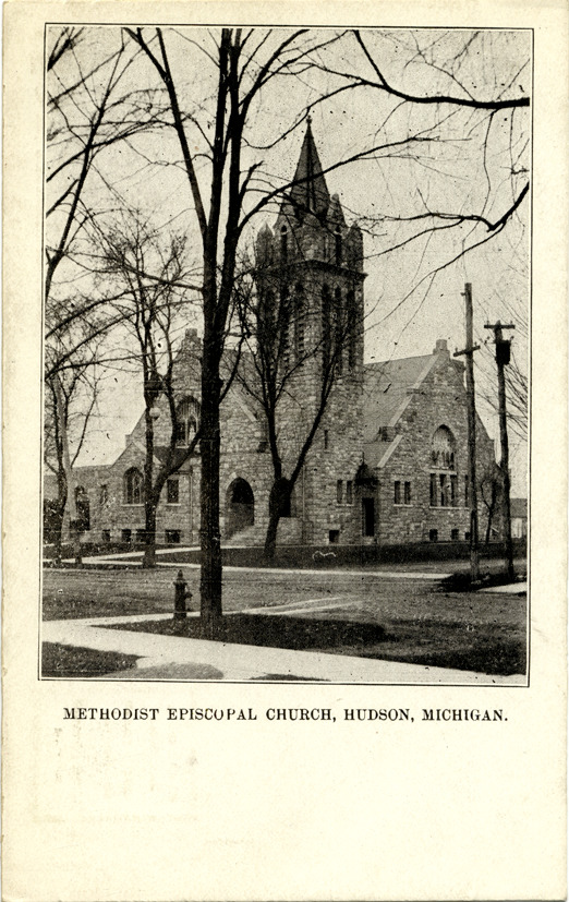 Favorite this☆ Methodist Episcopal Church, Hudson, Michigan Description: View of the Methodist Episcopal Church in Hudson, Michigan. Printed on front: "Methodist Episcopal Church, Hudson, Mich." Details Resource ID: bh014759 Subject: Methodist church buildings--Michigan--Hudson Methodist Episcopal Church Postcards Date Issued: Unknown year Format: 1 postcard ; 5.5 x 3.5 in. Member of: Burton Historical Collection Filing Location: M/Localities-Hudson Rights: Physical rights are retained by DPL. Copyright is retained in accordance with U.S. copyright laws.