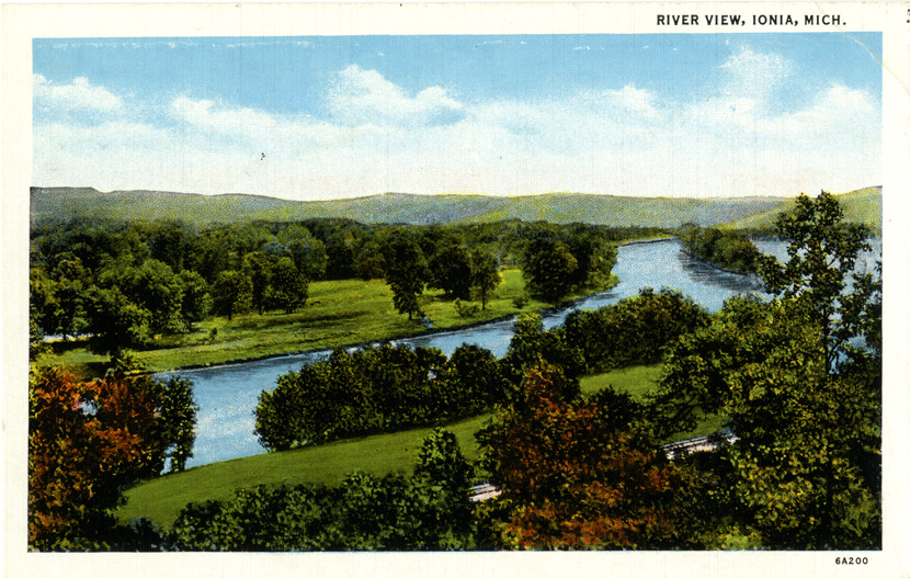 Favorite this☆ River, Ionia, Michigan Description: View of a river in Ionia, Michigan. Printed on front: "River view, Ionia, Mich." Printed on back: "Made by Curt Teich & Co., Inc., Chicago, U.S.A. CT Co., Chicago." Details Resource ID: bh014789 Subject: Rivers--Michigan--Ionia Postcards Publisher: Curt Teich & Co. Date Issued: Unknown year Format: 1 postcard : col. ; 3.5 x 5.5 in. Member of: Burton Historical Collection Filing Location: M/Localities-Ionia Rights: Physical rights are retained by DPL. Copyright is retained in accordance with U.S. copyright laws.