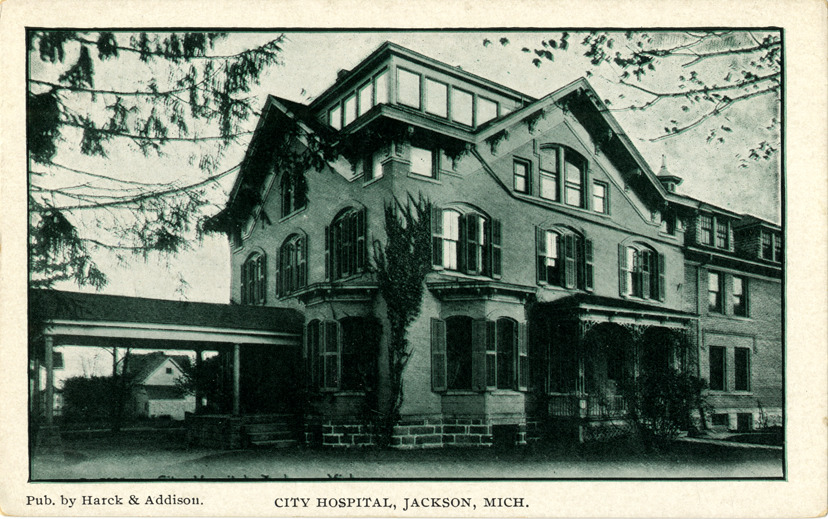Favorite this☆ City Hospital, Jackson, Michigan Description: View of the City Hospital in Jackson, Michigan. Printed on front: "City Hospital, Jackson, Mich. Pub. by Harck & Addison." Details Resource ID: bh014881 Subject: Hospital buildings--Michigan--Jackson Postcards Publisher: Harck & Addison Date Issued: Unknown year Format: 1 postcard ; 3.5 x 5.5 in. Member of: Burton Historical Collection Filing Location: M/Localities-Jackson Rights: Physical rights are retained by DPL. Copyright is retained in accordance with U.S. copyright laws.