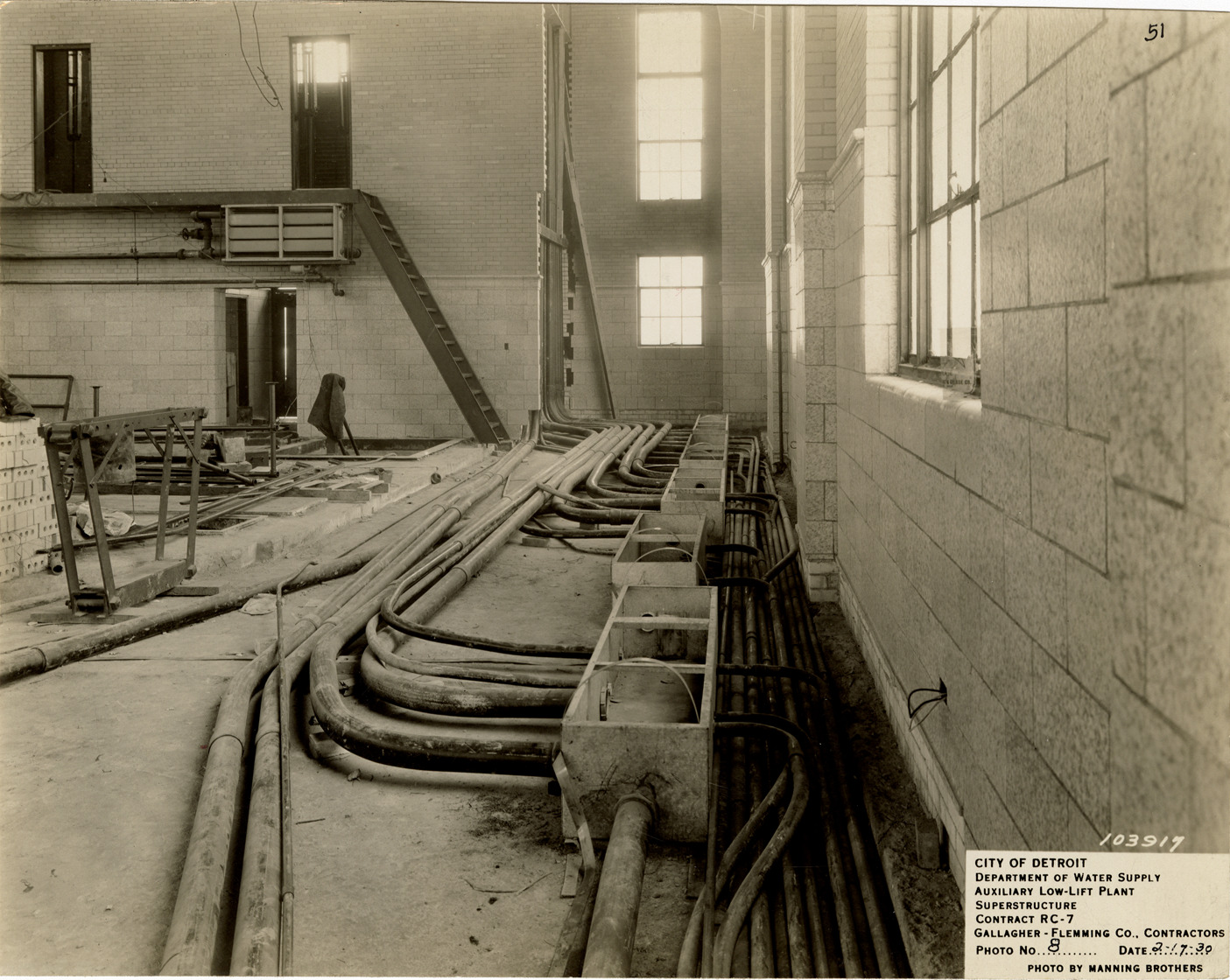 Electrical conduits and pull boxes, low lift plant during construction, Springwells Station, Detroit water supply system