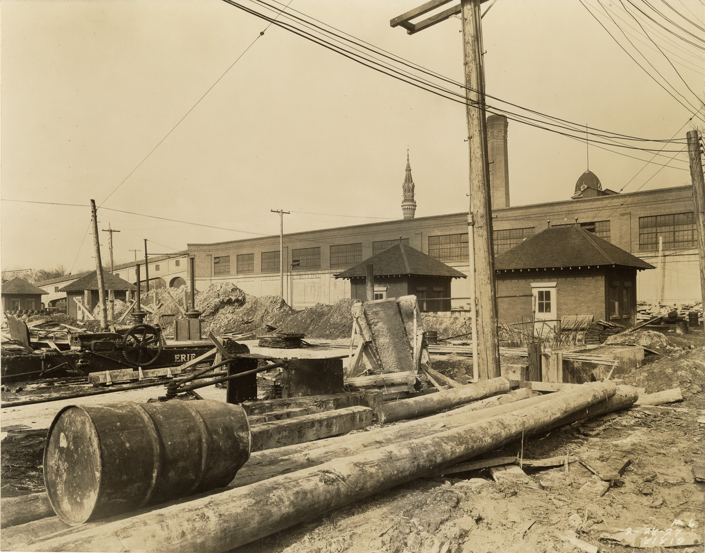 Outlet chamber during construction, Waterworks Park, Detroit water supply system