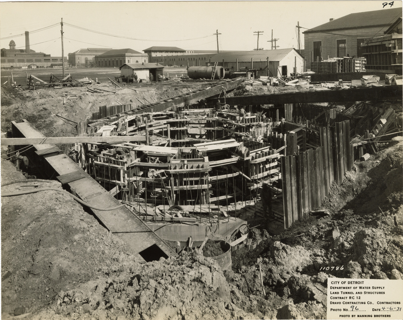 Screen chamber during construction, Waterworks Park, Detroit water supply system